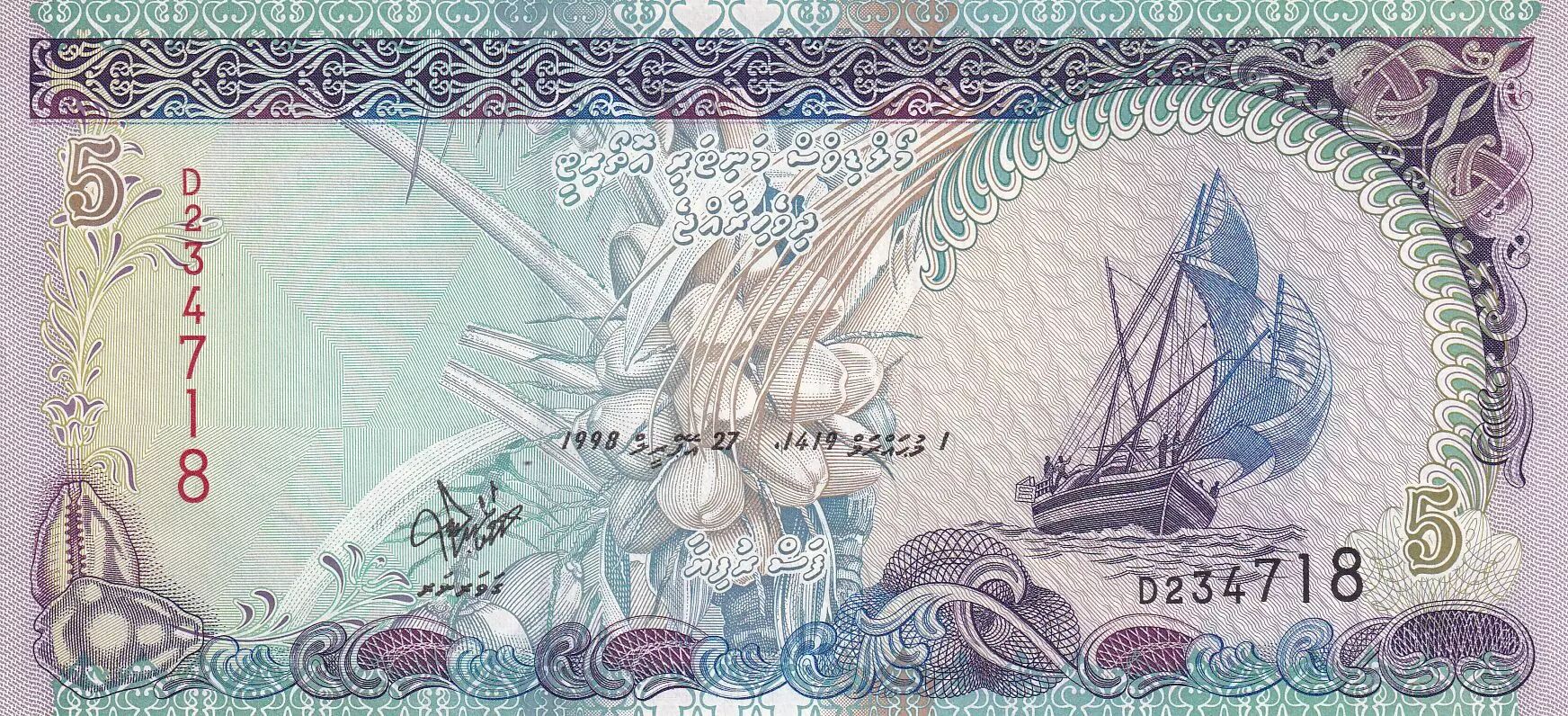 Accueil > Archivage > Maldives 5 Rufiyaa - Dhaw - Bateaux de pêche - 1998 - P.18a