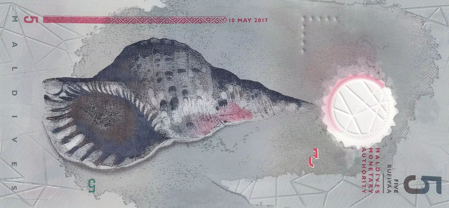 Billet Maldives 5 Rufiyaa, Football, Coquillage - Polymer - 2017 - Lettre E