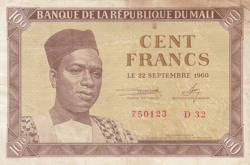 Billet Mali 100 Francs - Pdt Mobido Keita - Vaches - 1960 - Série D.32