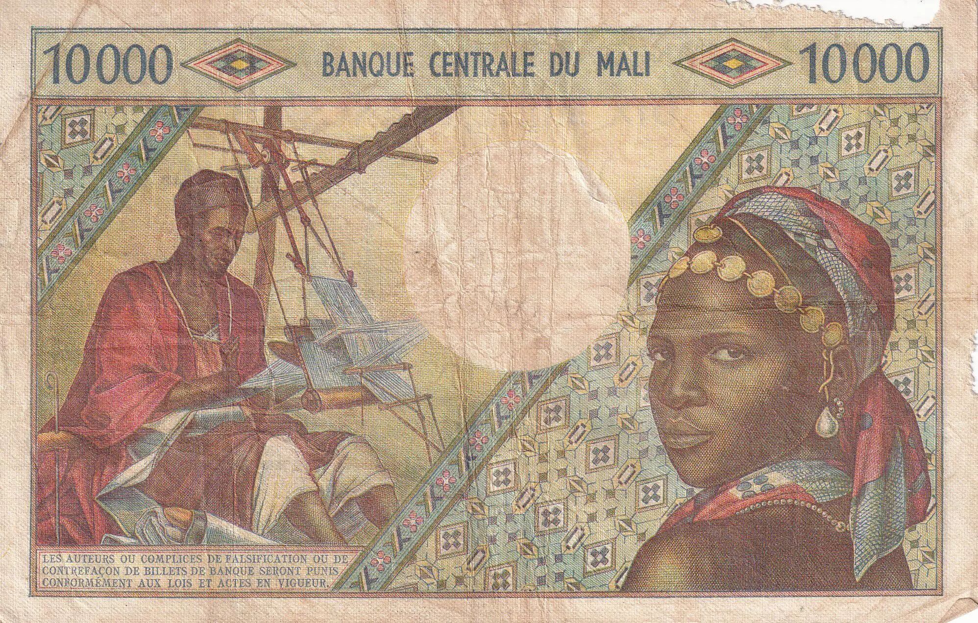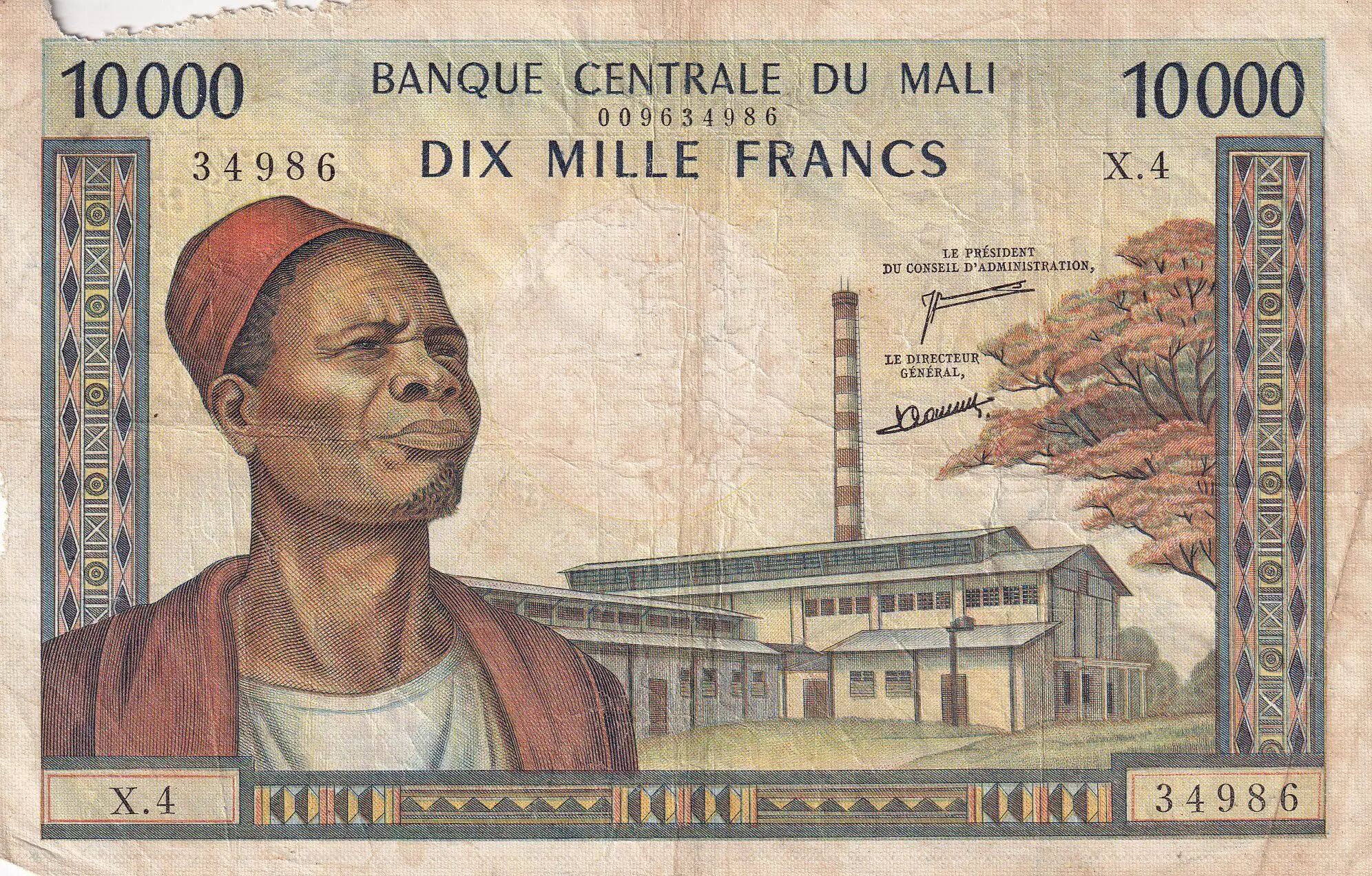 Banknote Mali 10000 francs - Man, factory - Woman - ND (1970-1984) - Serial X.4 - P.15e