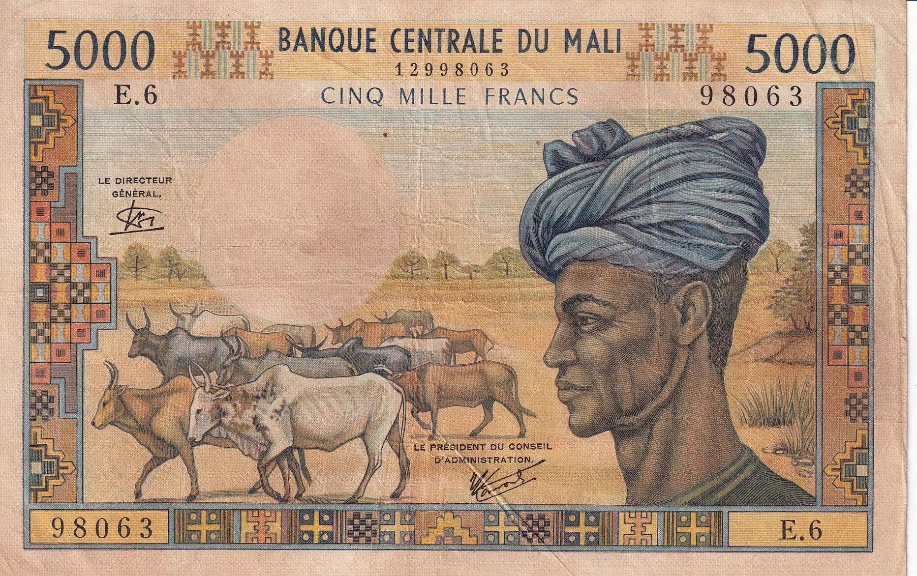 Billet Mali 5000 Francs - Portrait d'un autochtone - Femmes - 1973 - Série E.6