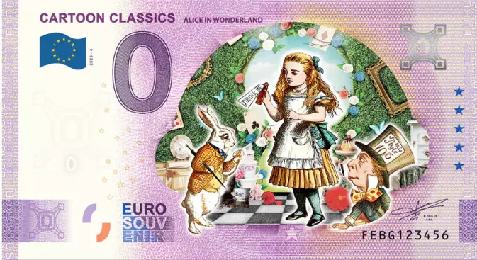 Malta 0 Euro Souvenir Banknote - Alice in Wonderland - 2025 ColorSize : 133 X 72 mmUnique numbering