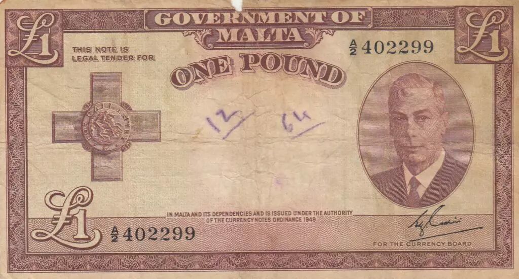 Banknote Malta 1 Pound L.1949 - George VI - A/2 402299