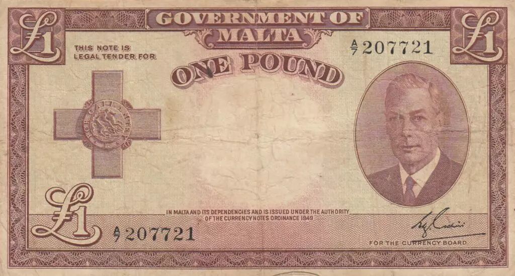 Banknote Malta 1 Pound L.1949 - George VI - A/7 207721