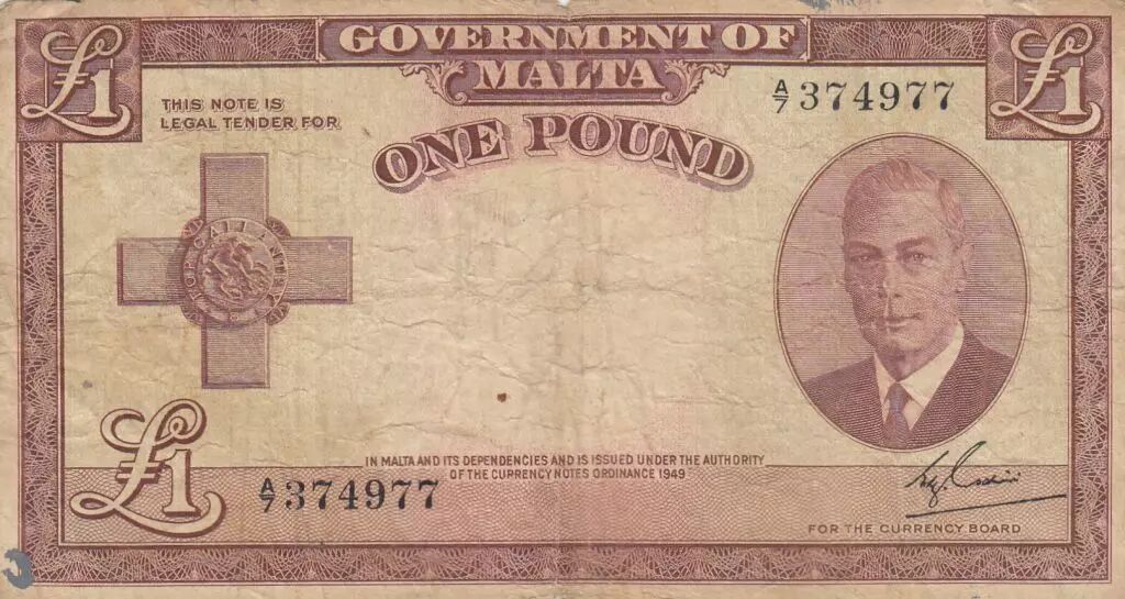 Banknote Malta 1 Pound L.1949 - George VI - A/7 374977