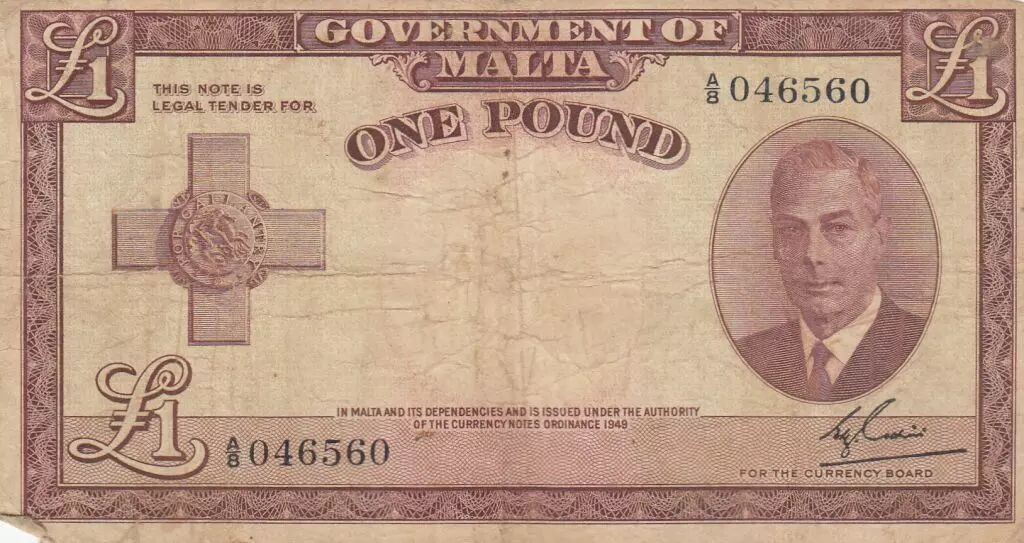 Banknote Malta 1 Pound L.1949 - George VI - A/8 046560