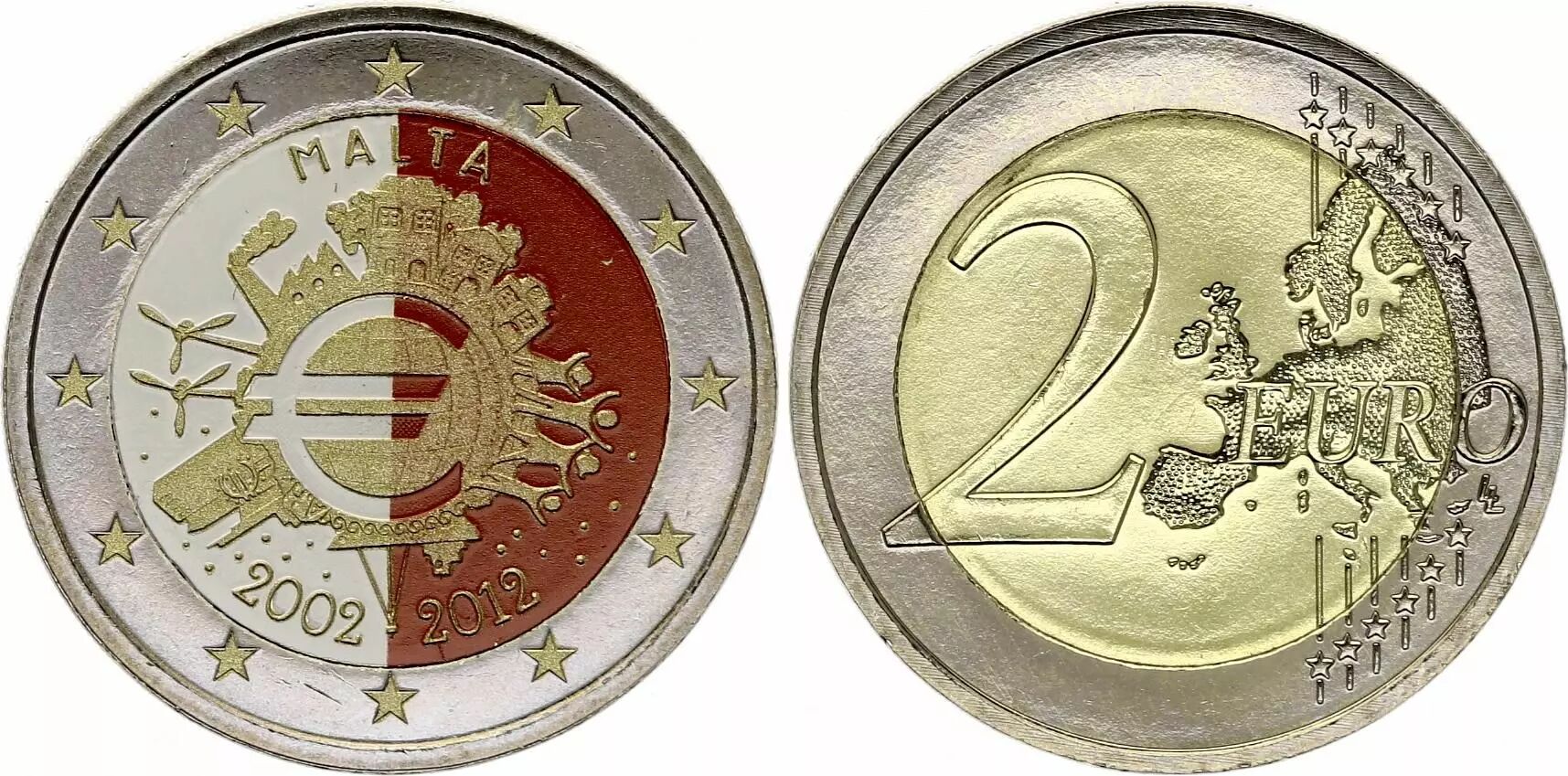 Coin Malta 2 Euros - 10 years of the Euro - Colorised - 2012