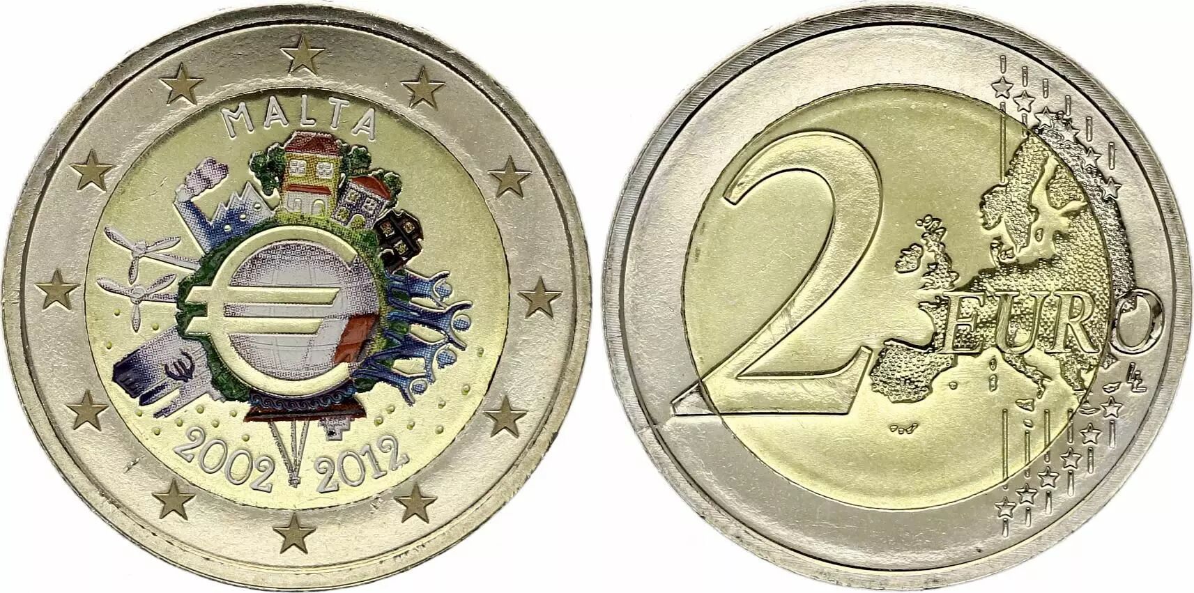 Coin Malta 2 Euros - 10 years of the Euro - Colorised - 2012