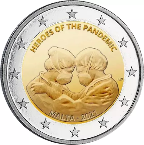The Central Bank of Malta is issuing an exceptional 2-euro coin dedicated to the heroes of the Pandemic - a tribute to all the staff who have accompanied society over the past months in the face of COVID and in support of the sick. This coin is only available in BU quality under coincard. It will not be offered in UNC or BE versions.