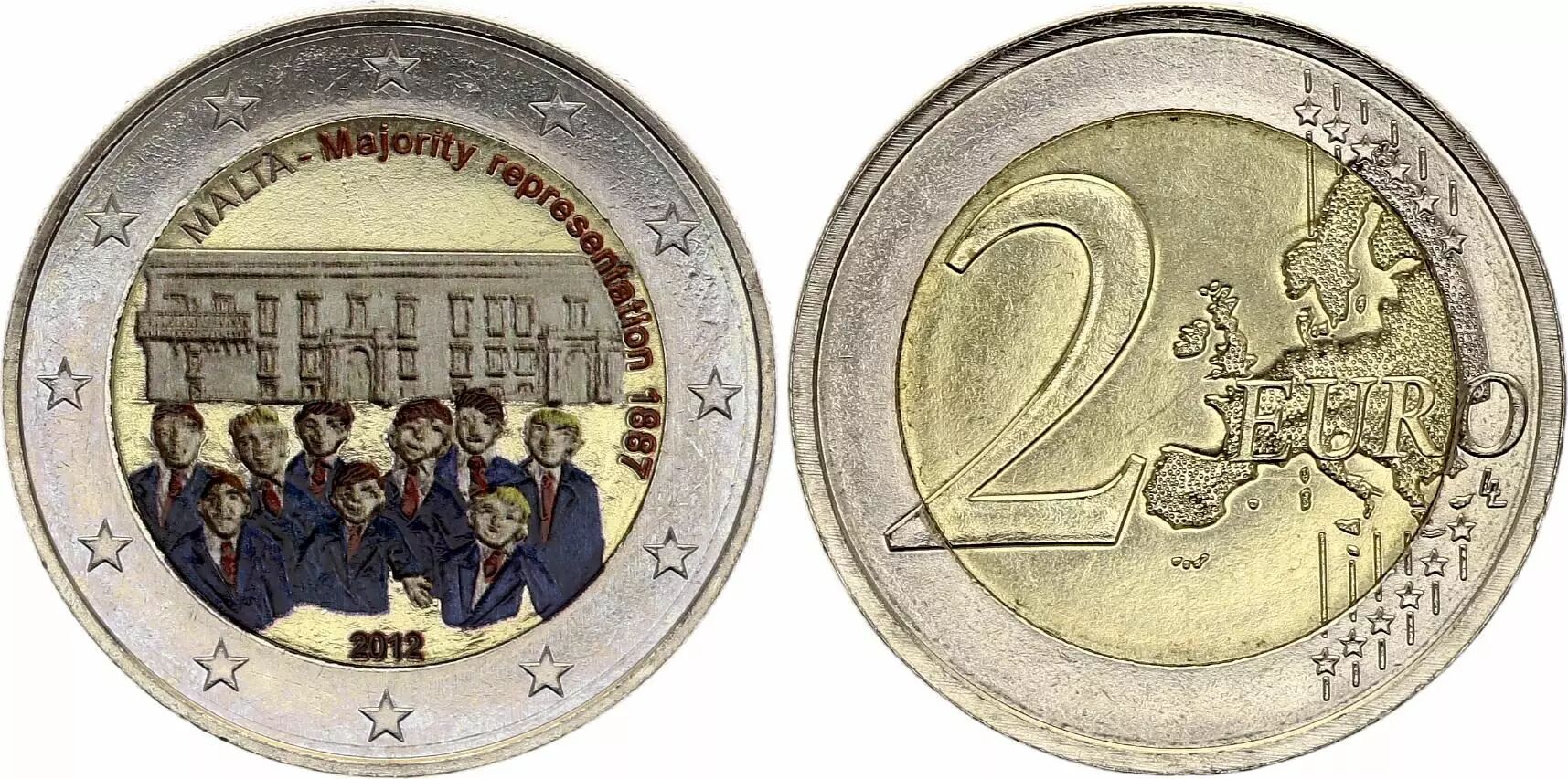 Home > World Coins > European Currencies > Malta > Malta 2 Euros - Majority representation - Colorised - 2012