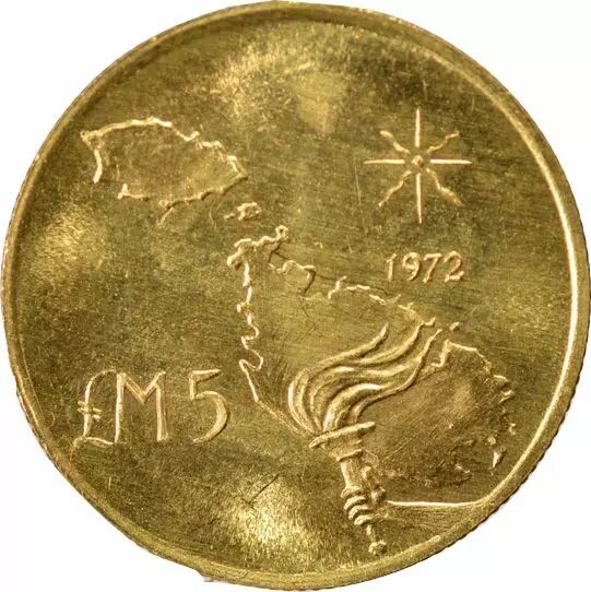 Home > World Coins > European Currencies > Malta > Malta 5 Gold Liri, Torch - 1972 Rome