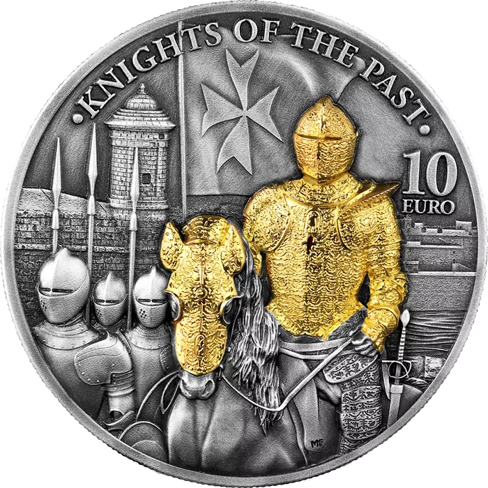 The 10 euro Malta 2023 "Knights of the Past" is the third and final commemorative coin created thanks to the close collaboration between the Central Bank of Malta and Germania Mint. The series of bullions is a modern reference to the traditions of the Order of Malta and its ups and downs in European history.