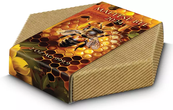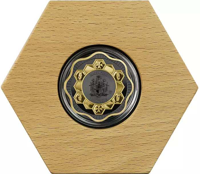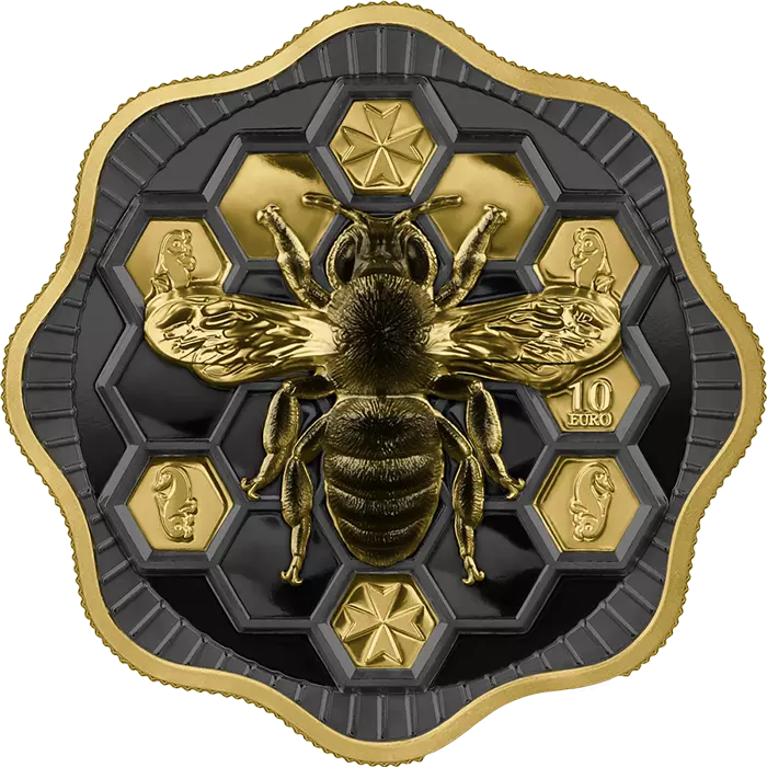 The obverse of the coin depicts a bee on a honeycomb background, the characteristic symbols of Malta. Numerous details, minted with precision by the Central Bank of Malta, a partner in this issue, highlight the anatomy of the insect.