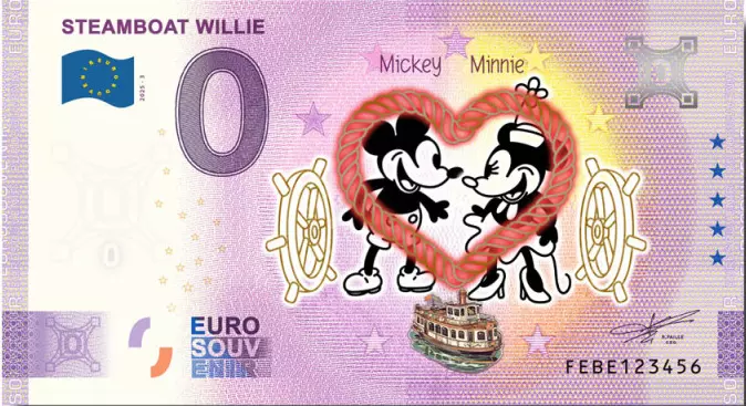 Billet Malte 0 Euro Souvenir - Mickey & Minnie - Steamboat Willie - Couleur - 2025