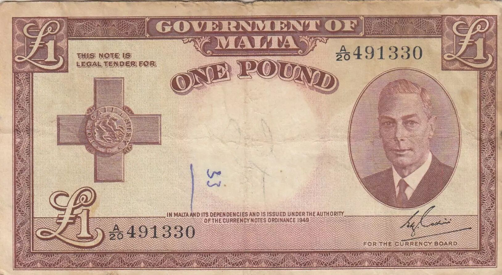 Ce billet de banque est une livre maltaise émise en 1949. Il appartient à la série A.20.