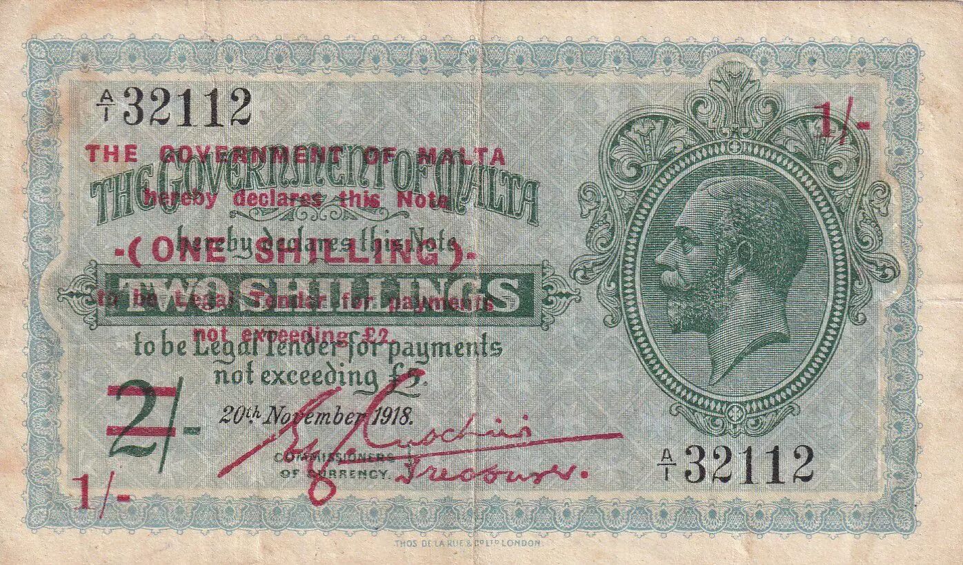 Billet Malte 1 Shilling sur 2 Shillings - George V - 1908 (old date) - 1940 - Série A.1 - P.15
