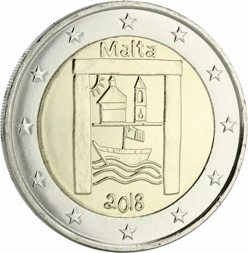 On retrouve sur cette pièce dessinée par un enfant maltais une porte néolithique les tours de la Valette et un Luzzu" bateau de pêche traditionnel.