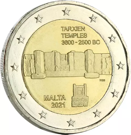 La Banque centrale de Malte a émis une pièce commémorative de 2 euros représentant les temples de Tarxien. Cette pièce est la sixième d'une série de sept pièces consacrées aux sites préhistoriques des îles maltaises qui figurent sur la liste du patrimoine mondial de l'UNESCO. Le revers de la pièce montre la face commune de 2 euros. L'avers (face nationale) qui a été conçu par Noel Galea Bason montre une représentation des temples de Tarxien.