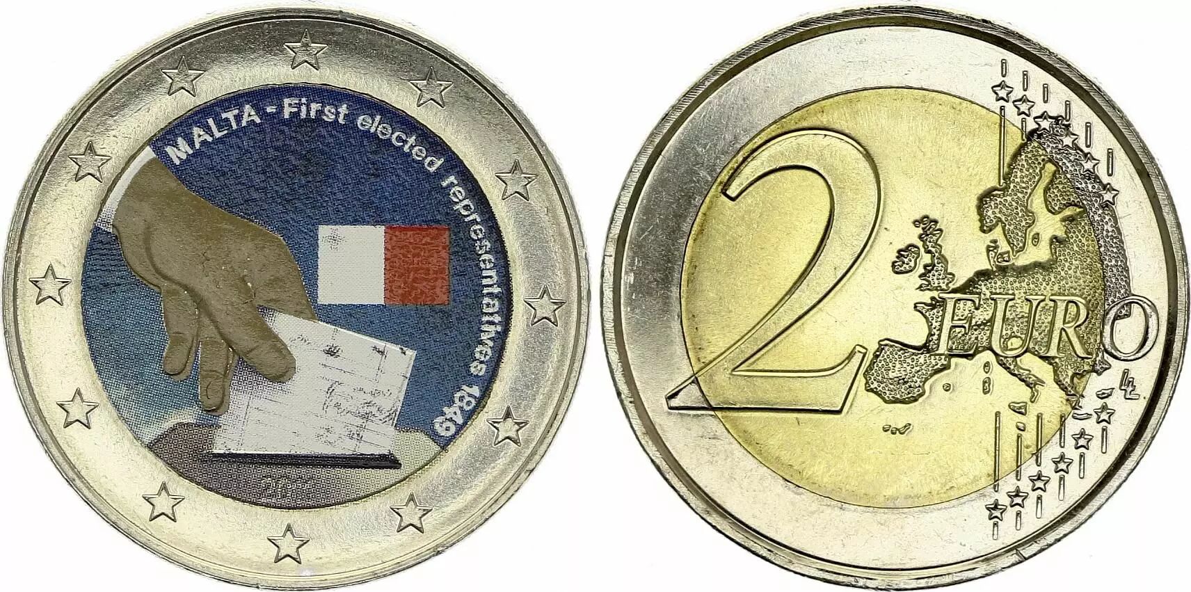 Accueil > > Malte 2 Euros - Election des premiers représentants - Colorisée - 2011