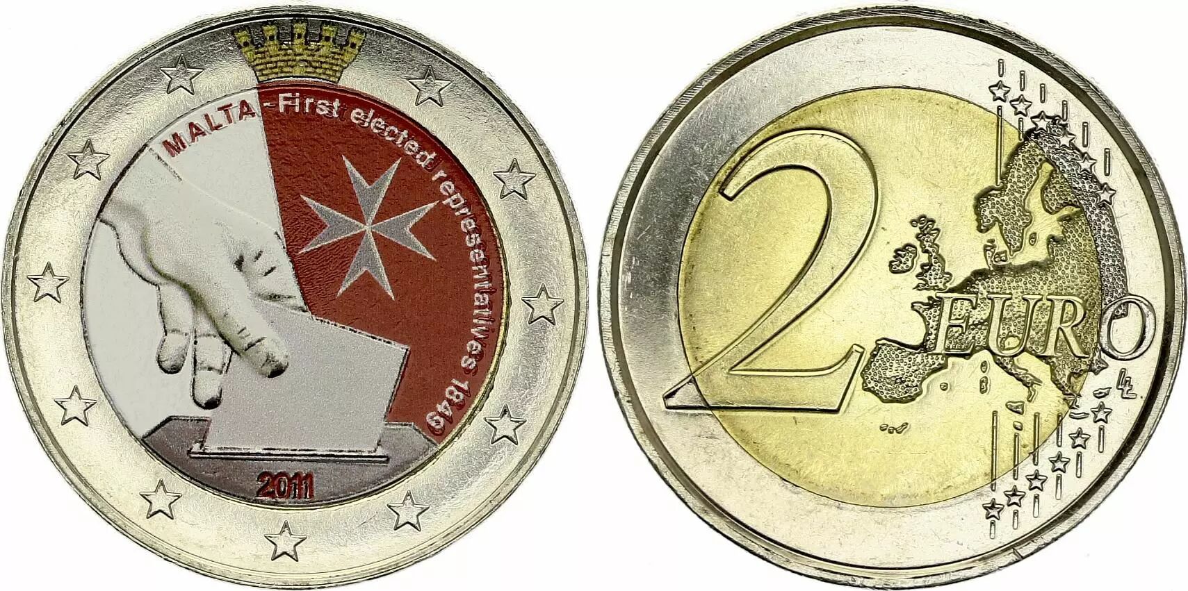 Accueil > > Malte 2 Euros - Election des premiers représentants - Colorisée - 2011