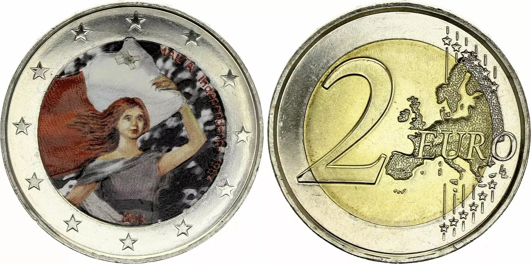 Accueil > > Malte 2 Euros - indépendance - Colorisée - 2014