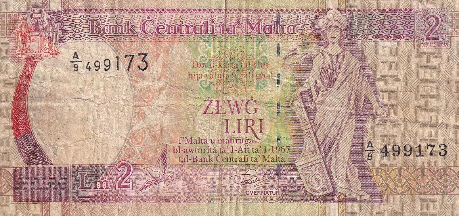 Accueil > Archivage > Malte 2 Liri - Guerrière - Monument - 1994 - Série A.9 - TB - P.45