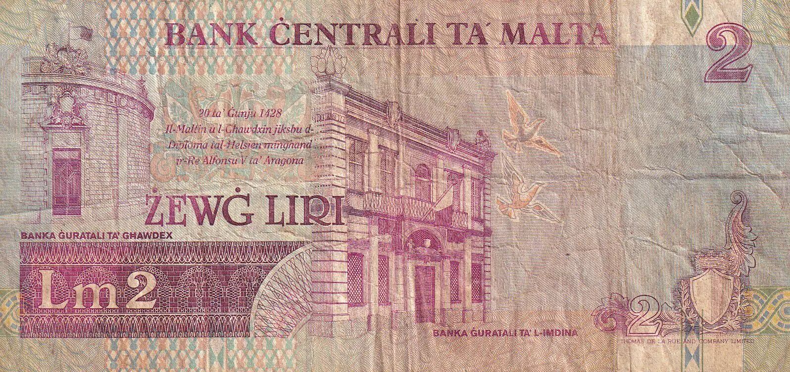 Billet Malte 2 Liri - Guerrière - Monument - 1994 - Série A.9 - TB - P.45