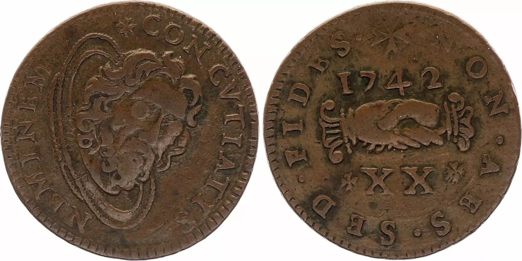 Pièce Malte 20 Grani - Mains jointes - 1742