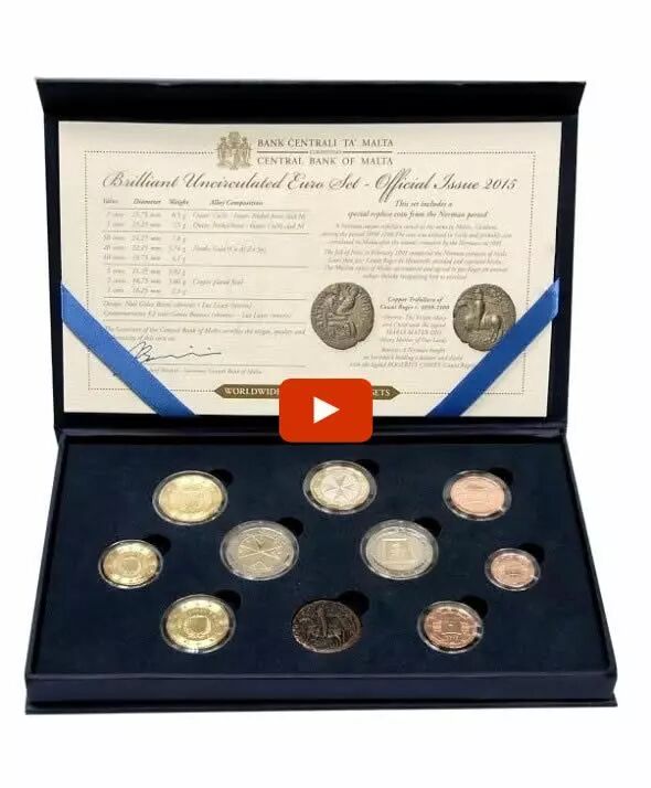 Contient les 8 pièces de la 1 cent à la 2 euros au millésime 2015 + la pièce 2? Commémo. Malte 2015 République" + une réplique de pièce romaine.