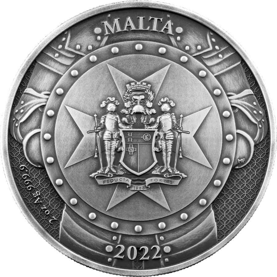 L'avers de la deuxième pièce de la série représente les Chevaliers de Malte en train de s'affronter aux envahisseurs lors du Grand Siège de Malte en 1565 - la bataille la plus importante de l'histoire de l'île et l'une des plus importantes pour l'Europe. Le revers de la pièce comme en 2021 représente les armoiries de la Central Bank of Malta sur un bouclier tenu par un chevalier maltais.