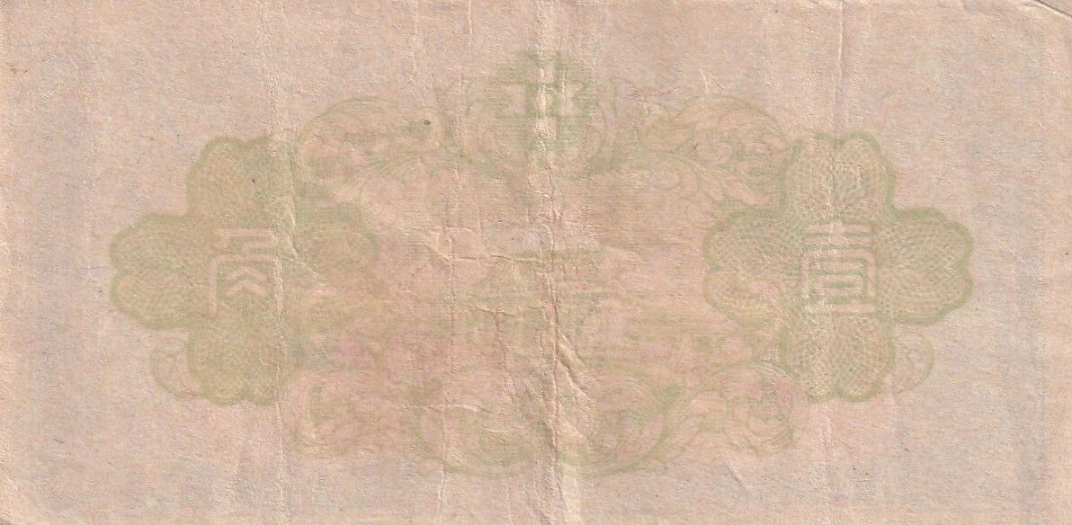 Ce billet de banque est un 1 Chiao, émis en 1944 par le Mandchoukouo. Il fait partie de la Série 120.