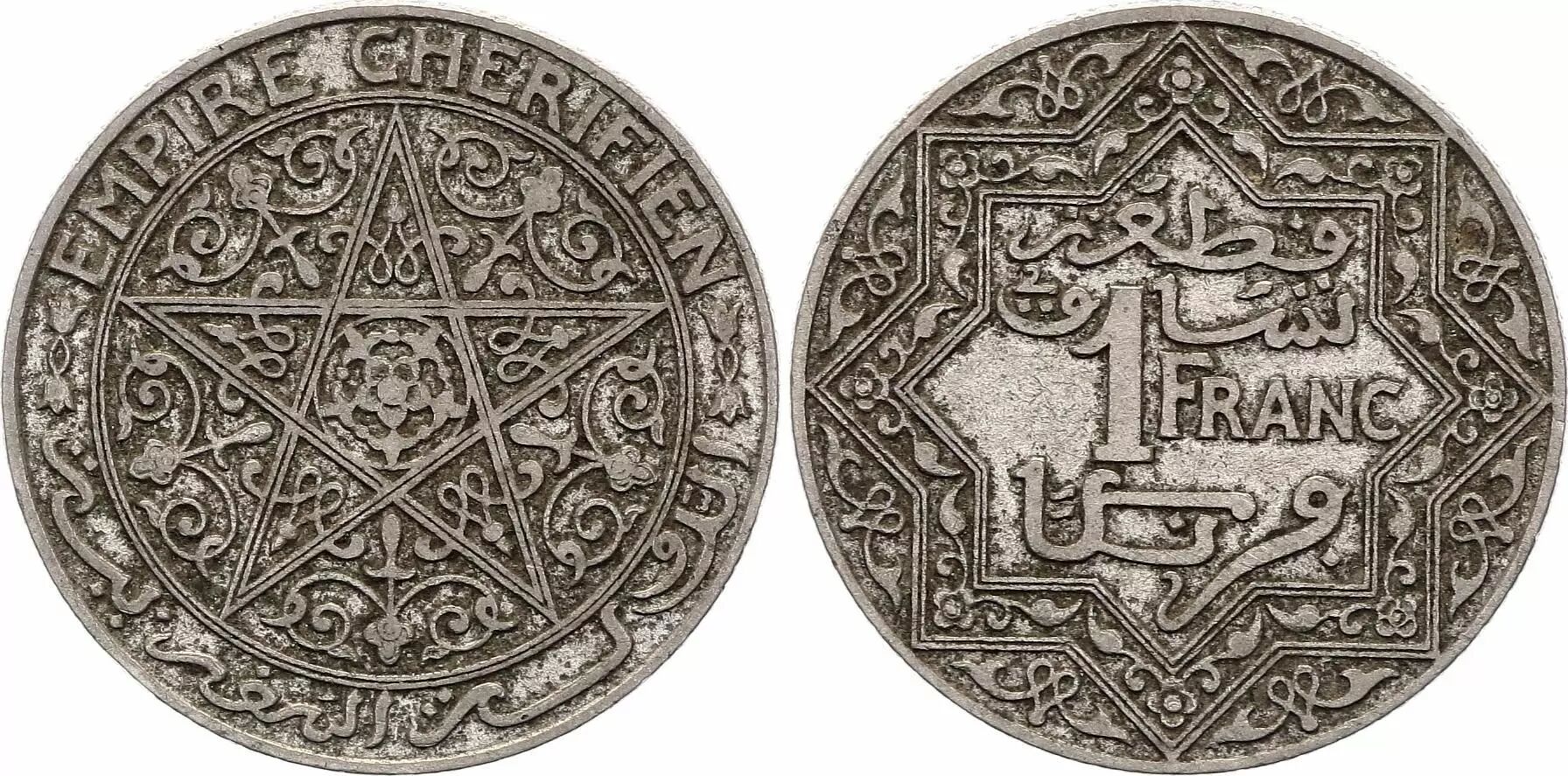 Accueil > Archivage > archivage-Monnaies du monde > Maroc 1 Franc Empire Cherifien - 1921 - Paris