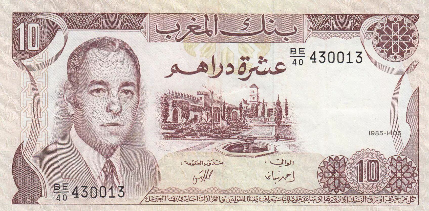 Billet Maroc 10 Dirhams Hassan II - 1985 - p.SUP - P.57b - Série BE/40