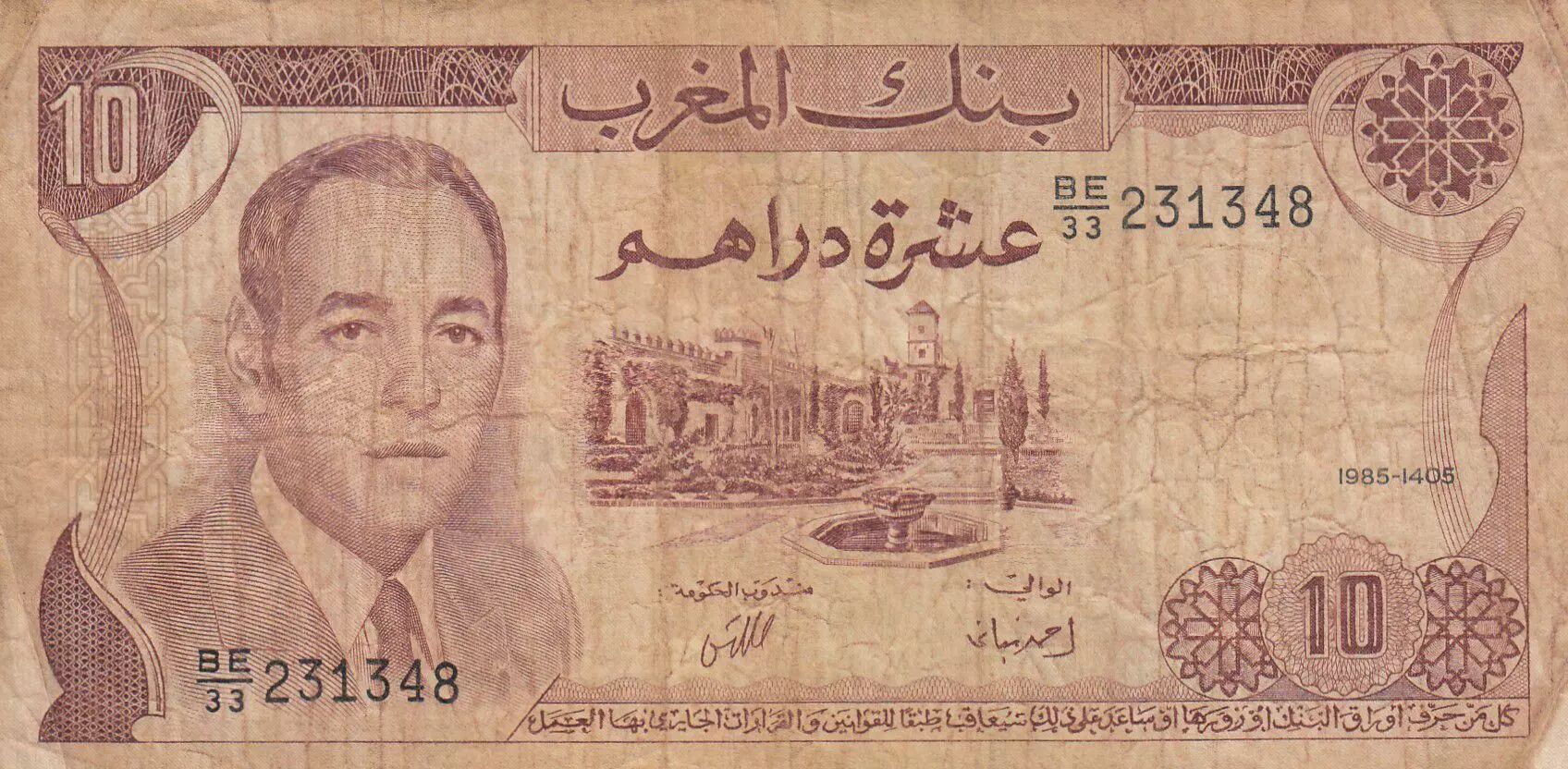 Accueil > Archivage > Maroc 10 Dirhams Hassan II - 1985 - pTB - P.57b - Série BE/33