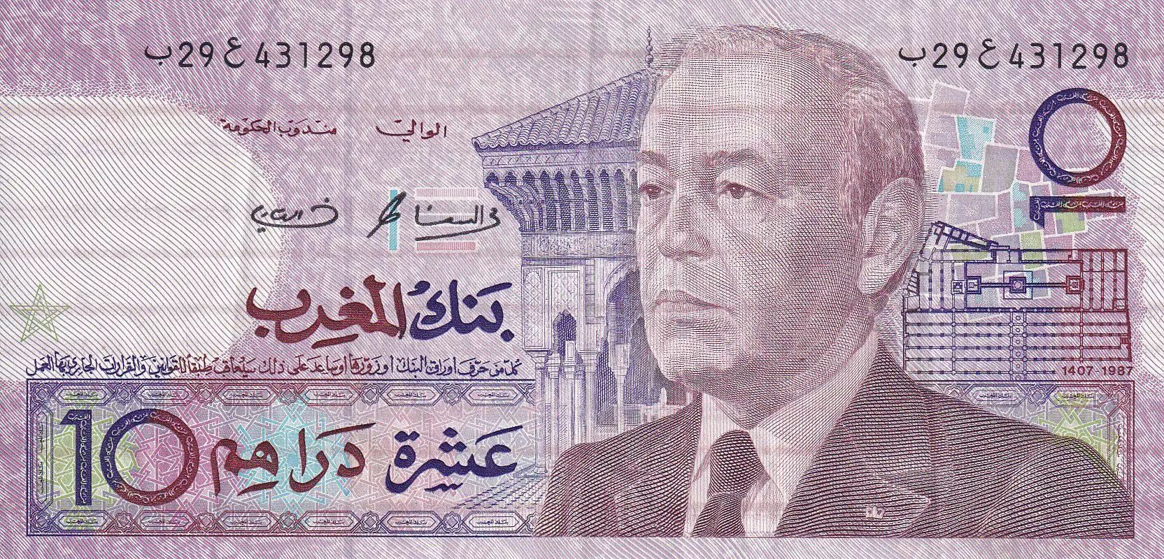 Billet Maroc 10 Dirhams - Hassan II - 1987 - TTB+ - P.63a