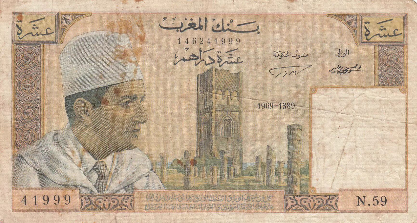 Billet Maroc 10 Dirhams Mohammed V - 1969 - TB - P.54f - Série N.59