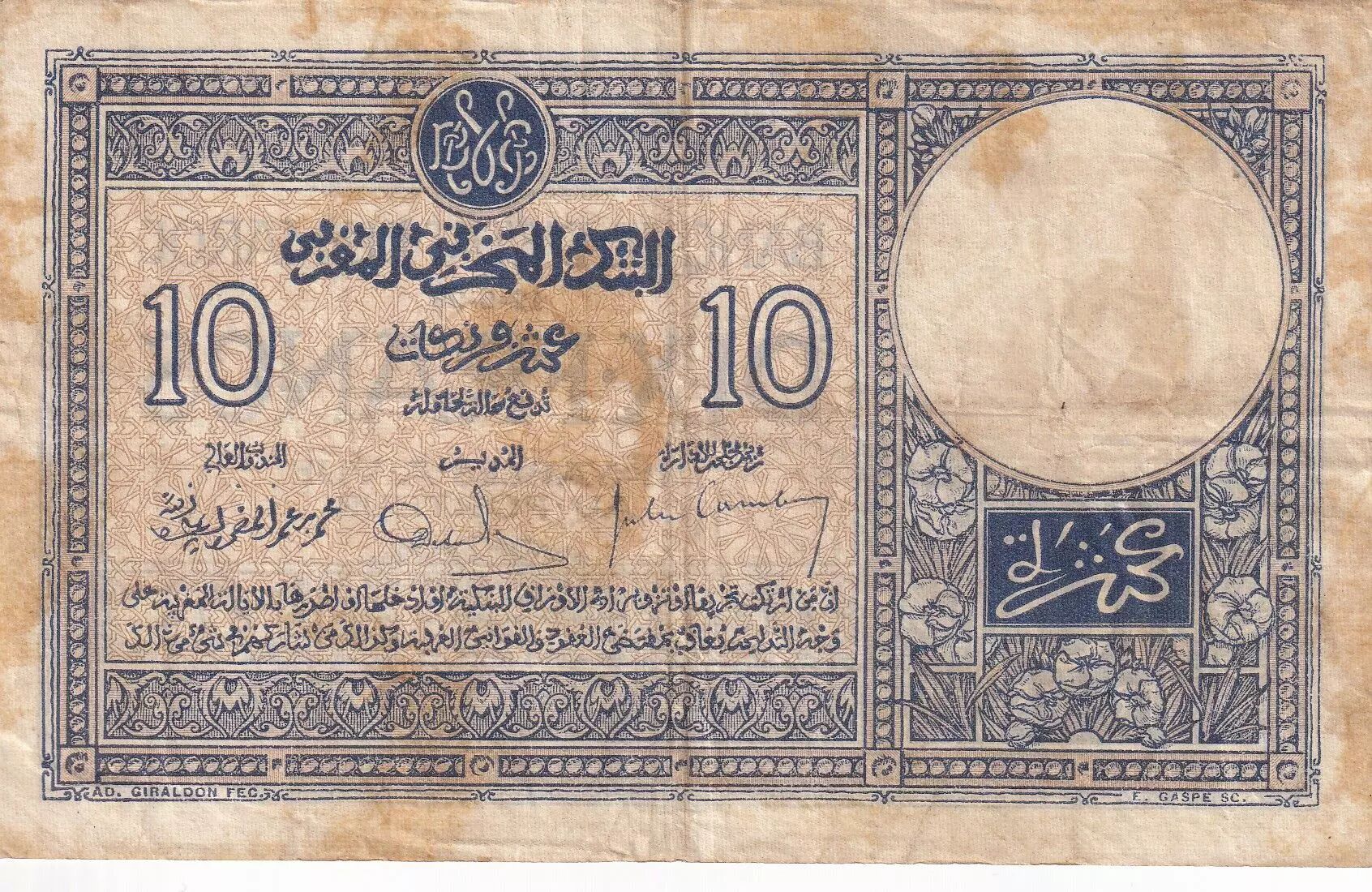Billet Maroc 10 Francs - 12-06-1929 - Série A.1347