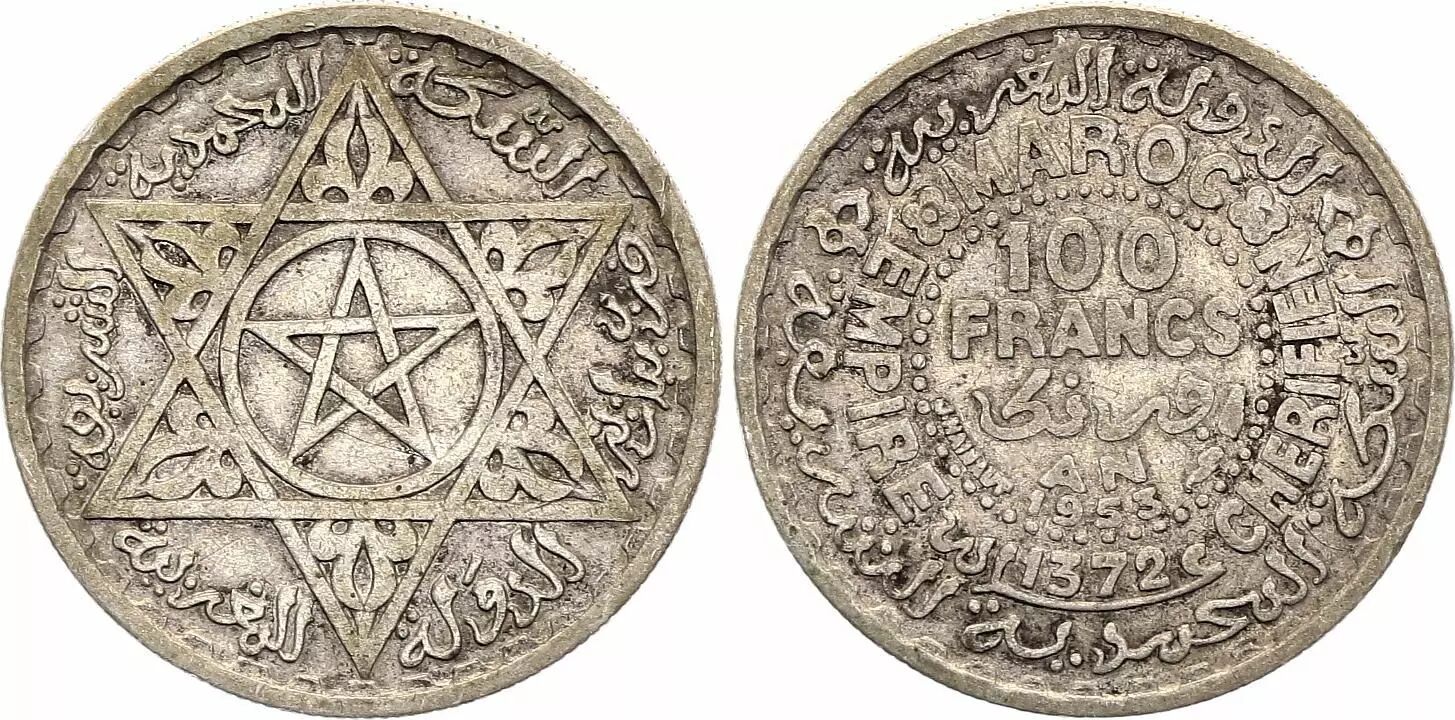 Pièce Maroc 100 Francs Empire Cherifien - 1372 (1953)
