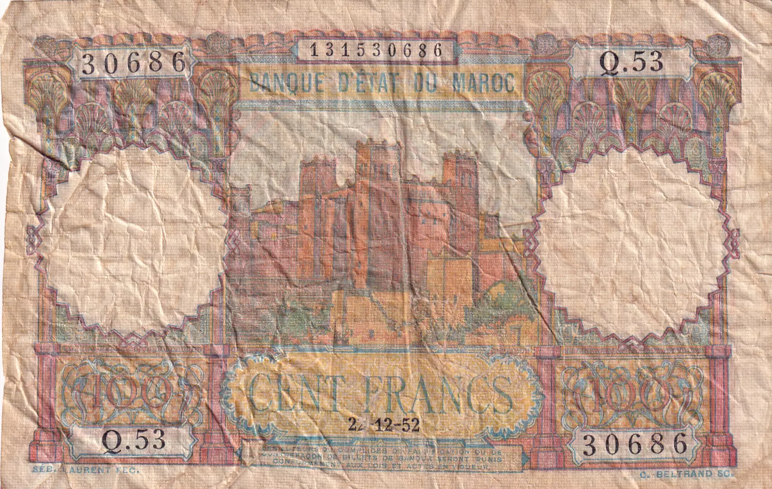 Plis nombreux, épinglages, salissures, déchirures