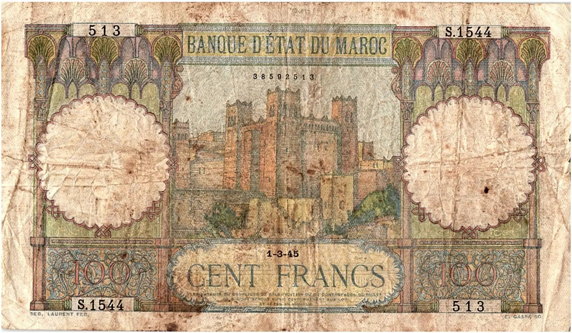 Billet Maroc 100 Francs - Ksar d'Aït-ben-haddou - 01-03-1945 - TB - Série S.1544 - P.20