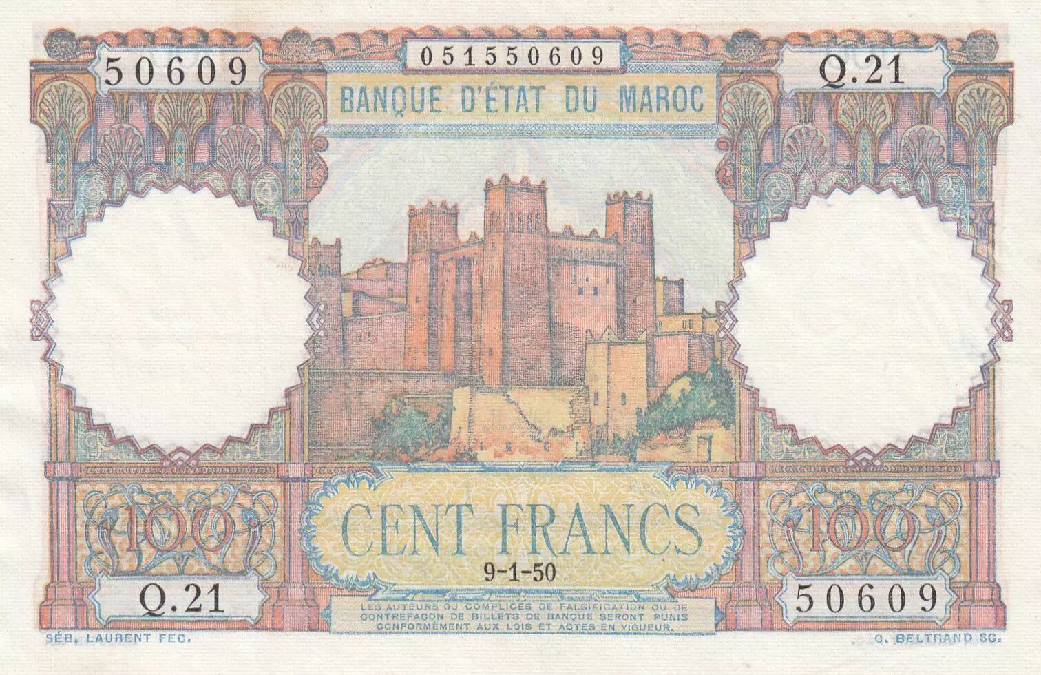 Billet Maroc 100 Francs - Ksar d'Aït-ben-haddou - 09-01-1950 - SUP - Série Q.21 - P.45