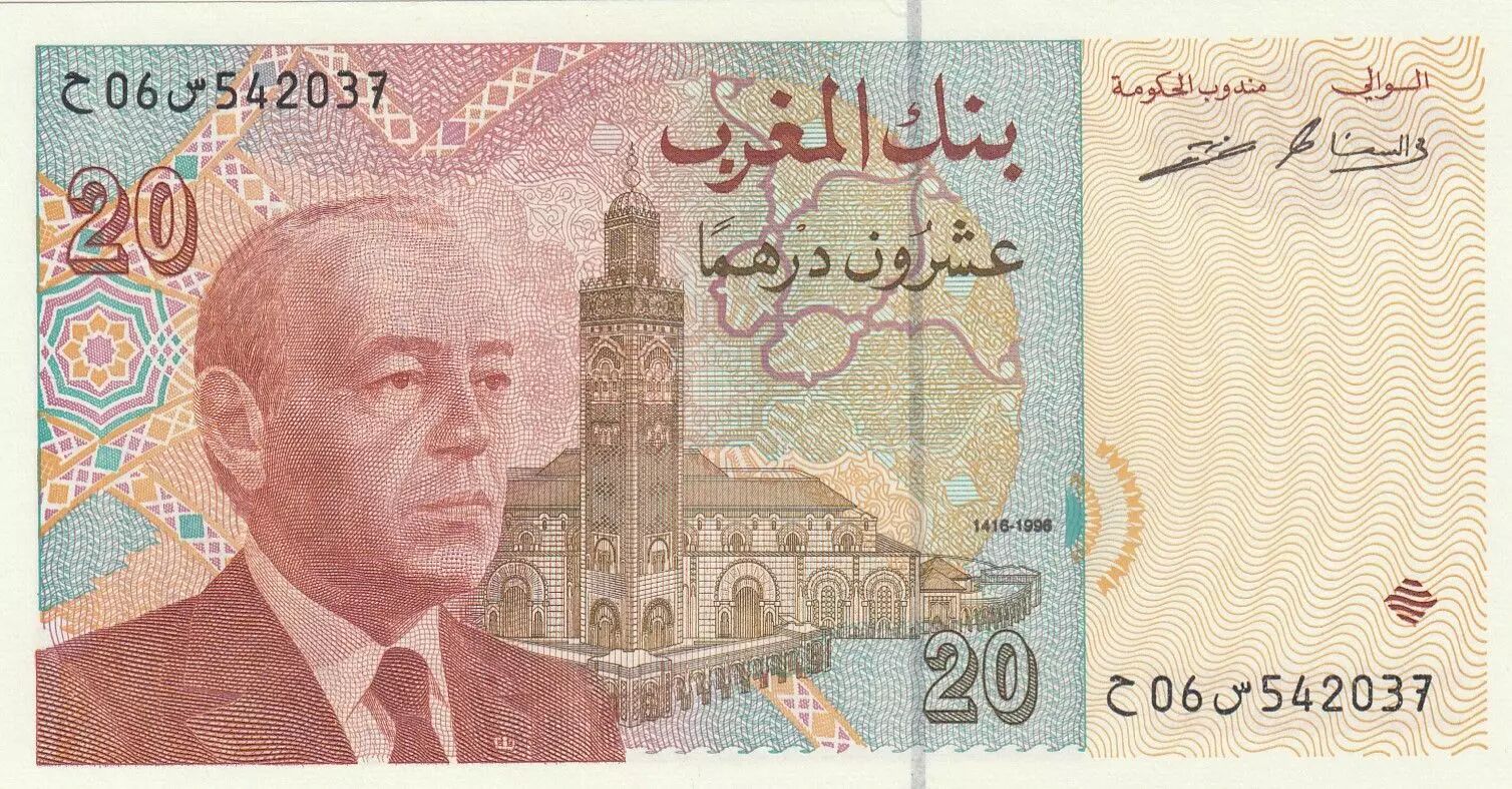 Accueil > Archivage > archivage-Billets du Monde > Maroc 20 Dirhams - Hassan II - 1996 - Série H