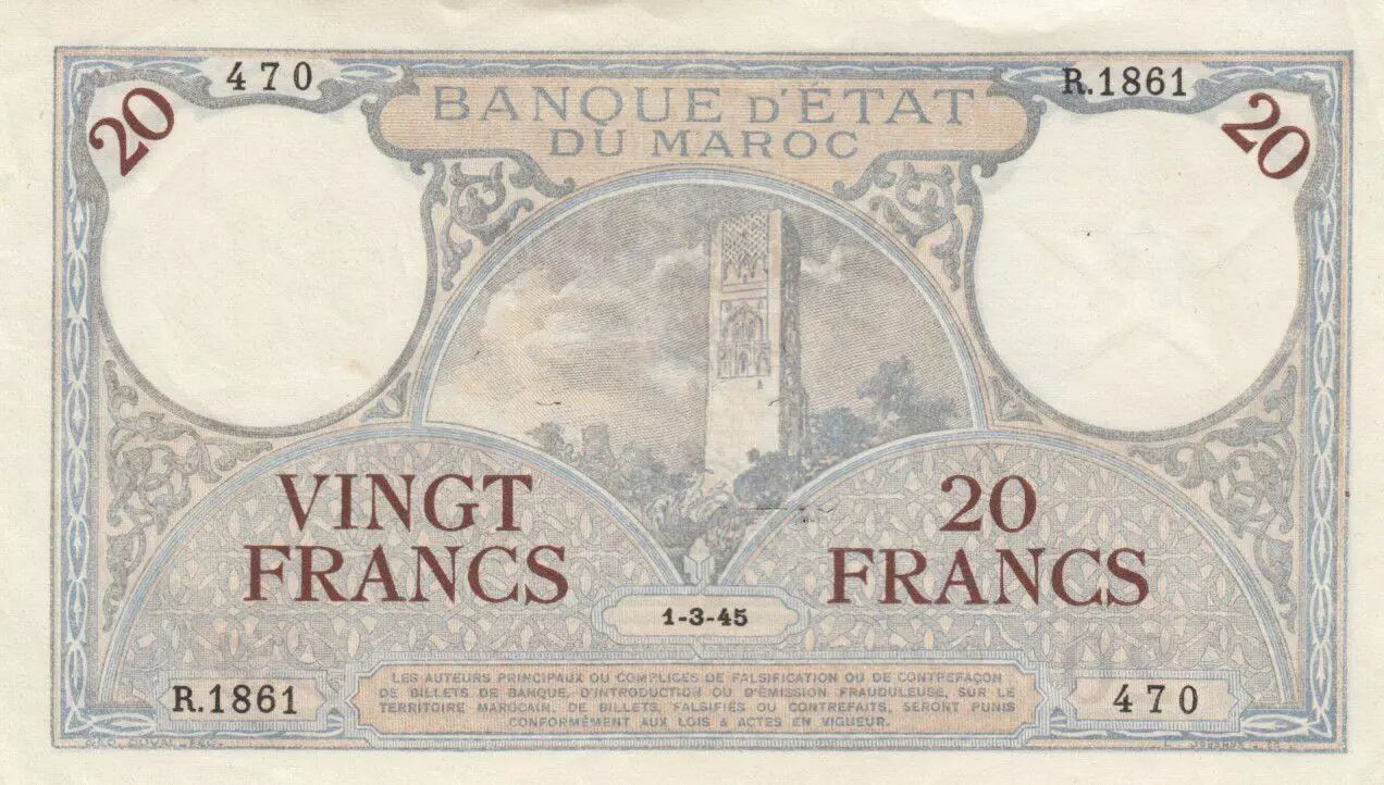 Billet Maroc 20 Francs Minaret - 01-03-1945 - SUP - R.1861-470 - P.18