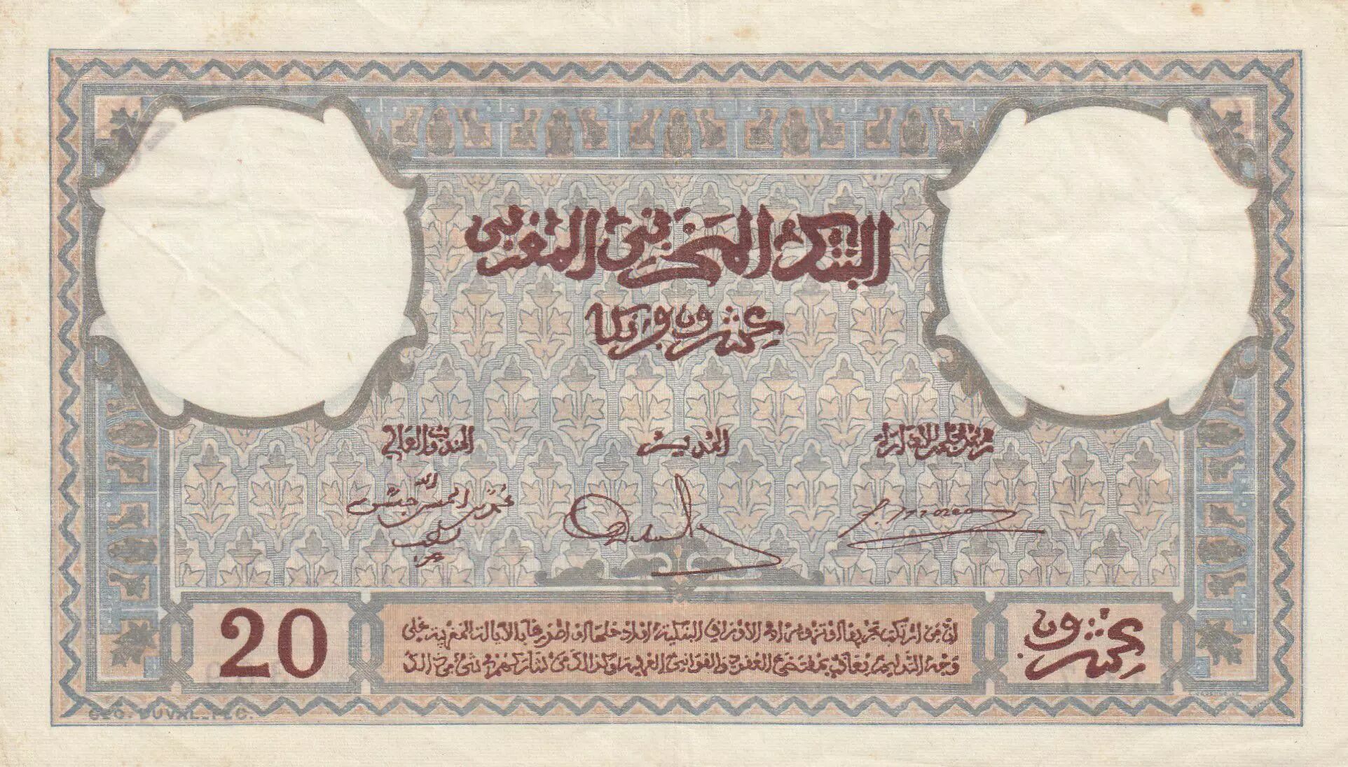 Billet Maroc 20 Francs Minaret - 14-11-1941 - TTB + - Série Y.1347 - P.18b