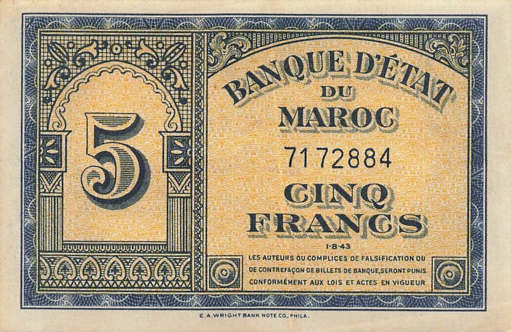 Billet Maroc 5 Francs - 01-08-1943 - P.24a