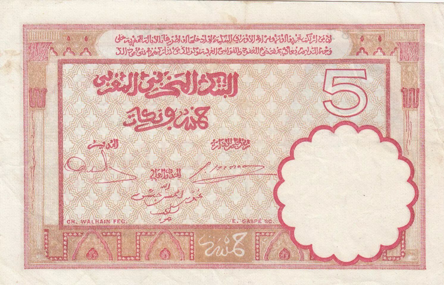 Accueil > Billets du Monde > Billets d'Afrique > Maroc > Maroc 5 Francs 14-11-1941 - SUP- Série F.827 - P.23Ab