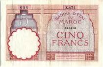 Billet Maroc 5 Francs 14-11-1941 - TTB - Série K.474 - P.23Ab