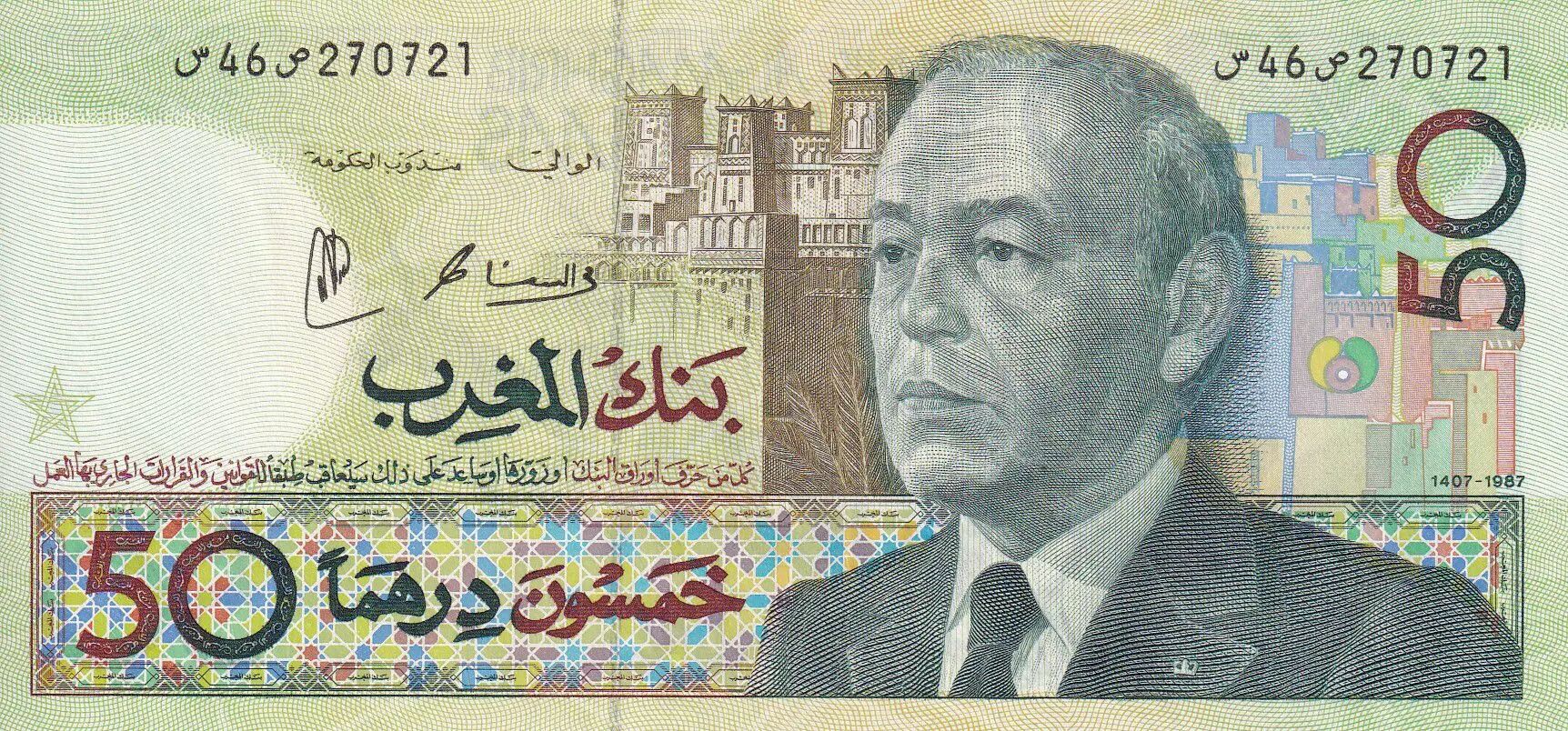 Billet Maroc 50 Dirhams - Hassan II - charge militaire à cheval - 1987 - NEUF - P.64d