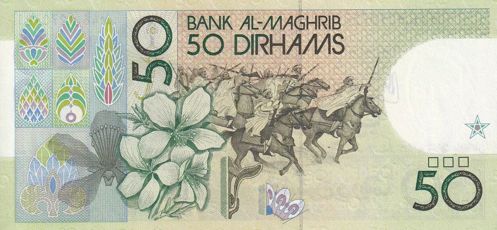Accueil > Archivage > Maroc 50 Dirhams - Hassan II - charge militaire à cheval - 1987 - NEUF - P.64d