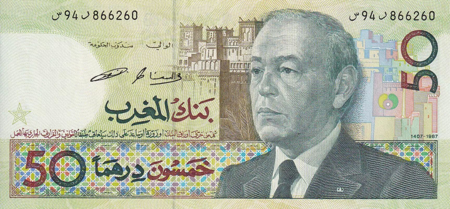 Billet Maroc 50 Dirhams - Hassan II - charge militaire à cheval - 1987 - SPL+ - P.64c